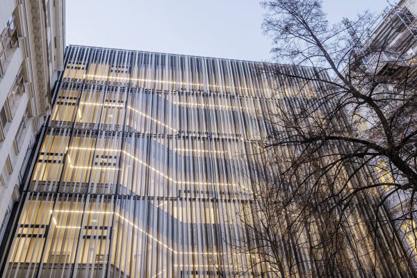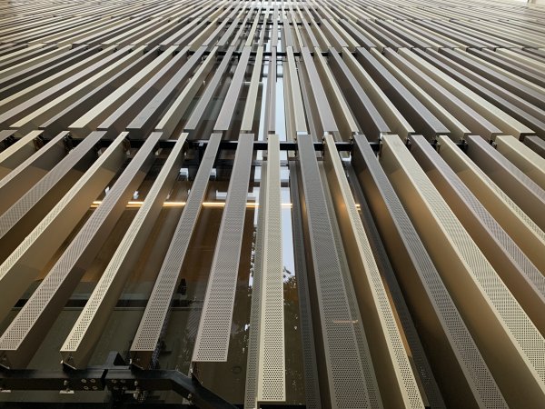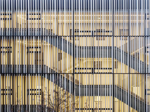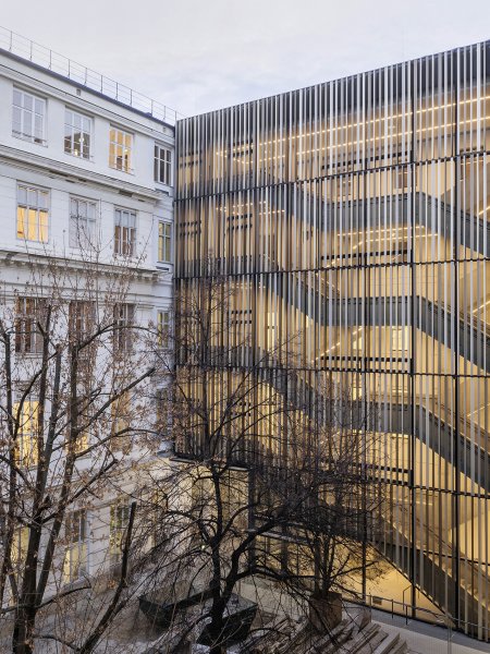 The shell stands out from the structures in Courtyard 1 of the Vienna University of Technology and unfolds a new charm by means of a simple Z-profile construction. Due to their different angles, the profiles can act as sun protection.