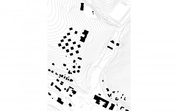 An arrangement of fourteen two-storey, compact and articulated buildings, partly inserted into the slope.