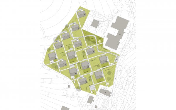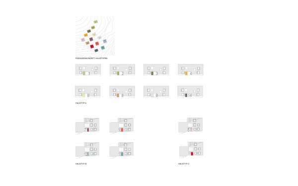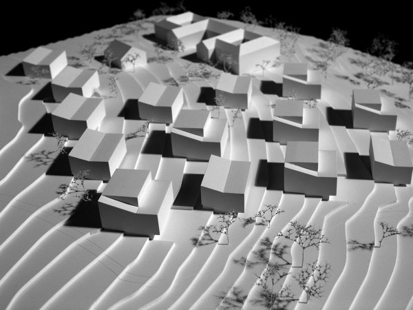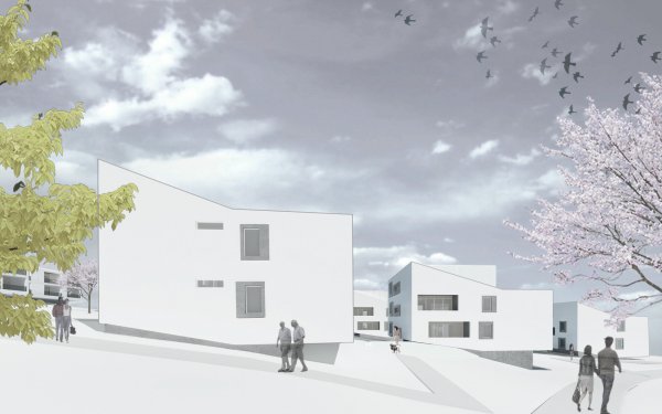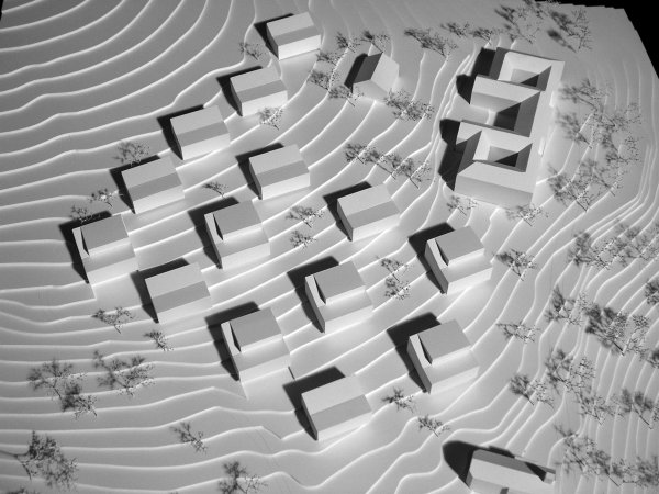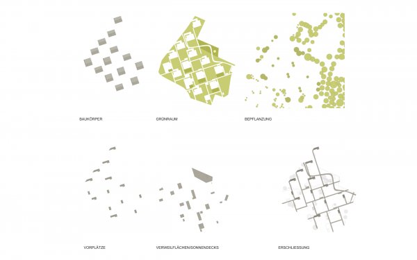 An accommodation of the 90 apartment units in 14 residential buildings and the creation of the greatest possible open space.