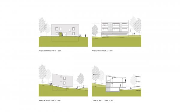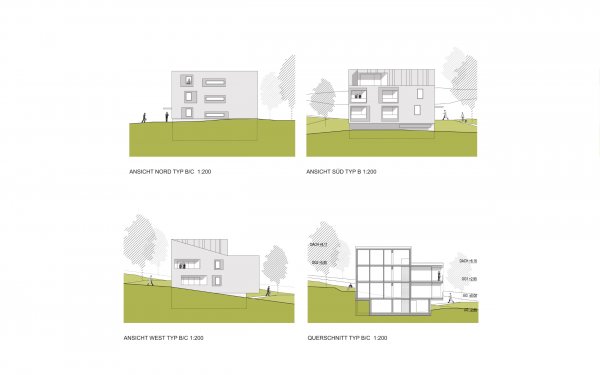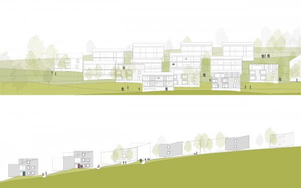 The views, into the landscape from the individual residential units, and open spaces are a decisive factor for a very high living quality of the complex.