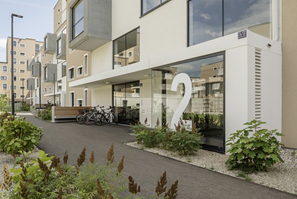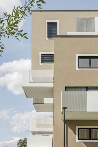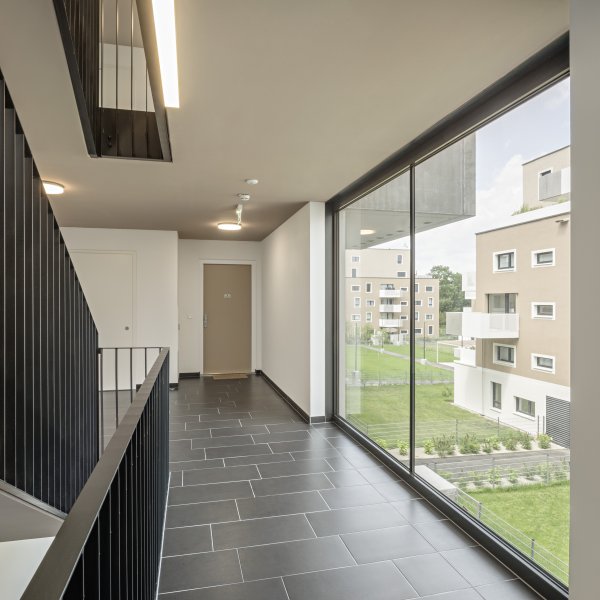 Der Großteil der Wohnungen ist zweiseitig belichtet und somit Querdurchlüftbar. Durch das leichte Anheben der Erdgeschoßzone, werden die Eigengärten von den Gemeinschaftsgärten abgesetzt und somit kein Einsicht und hohe Privatsphäre geschaffen.
