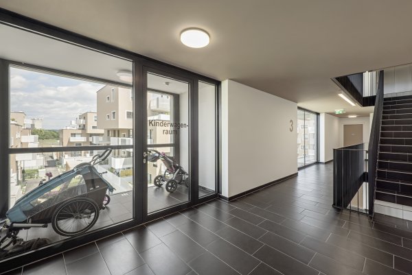 Vor jedem Haus bzw. jeder Stiege sind Rad- und Kinderwagenräume vorgesehen. Diese sind Geschoß- bzw. Villenbezogen und sind somit für die jeweilige Nachbarschaft entsprechend positioniert. Mein Rad vor der Tür!