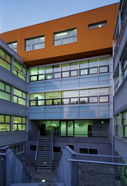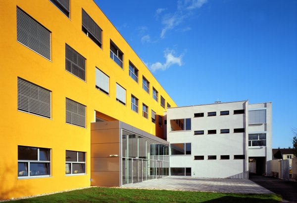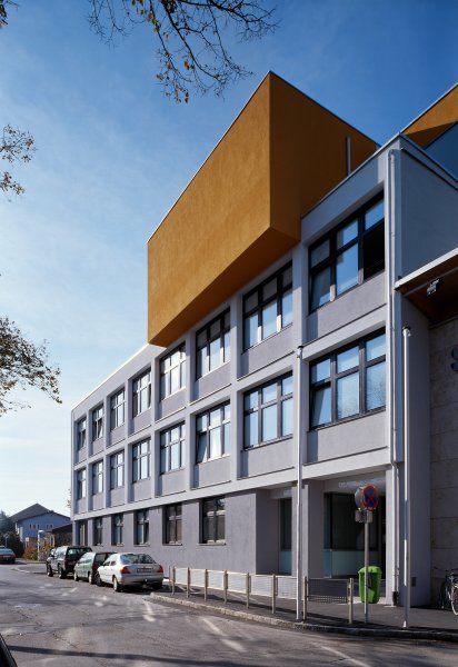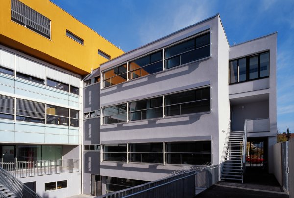 The project consists of an extension perpendicular to the existing building, which connects the two buildings of the existing building stock and forms a closed whole with them.