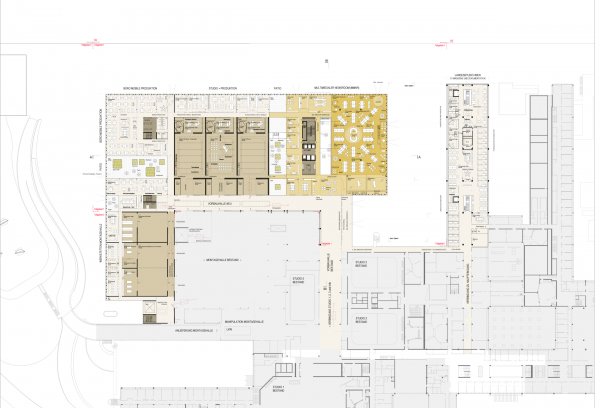 From the author's point of view, however, a demolition of the entire object 10, including the studio, is to be aimed at in view of the total investment volume. Due to the implementation of a new internal structure of the ORF, the integration of the old studio into the new direct spatial connection to the extended front hall is considered as a reasonable functional solution.