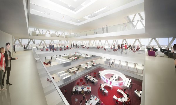The 10-storey solitary Newstower, in combination with the base slab, redefines the new internal order of ORF. It also carries it to the outside, where all the multimedia Newsroom and all the adjacent areas are contained next to all visitor areas.