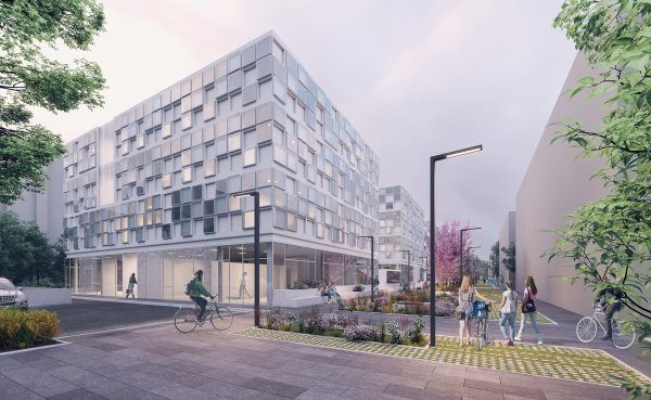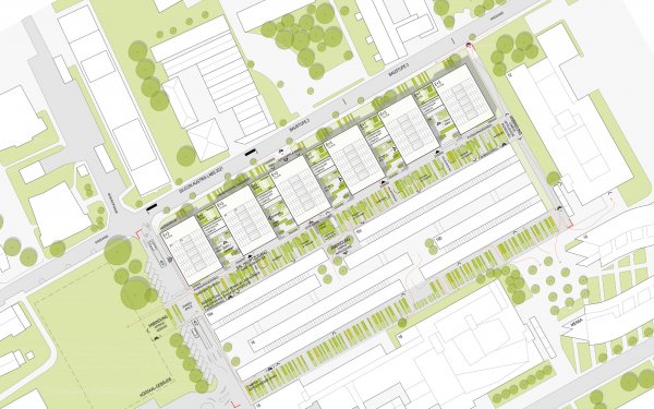 The conceptual approach considers the area in its entirety. The basic framework for this campus structure is an ensemble of serial buildings that allow for freely scalable expansion without affecting the open framework.