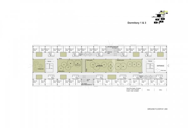 One of the main aspects of this project is the careful use of local resources. The building structures are a mix of concrete and wooden elements. Due to small span widths and simple detailed designs, the buildings can be constructed in a short time and with simple means. Intelligent facades allow a reduction in the amount of glass and conceive a positive ecological footprint.