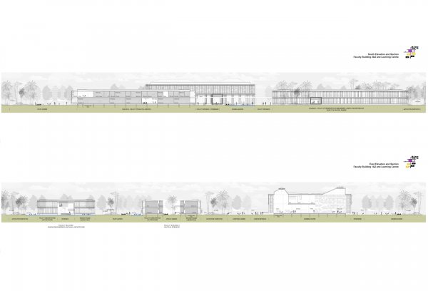 The campus is closely integrated into the surrounding flora, and it is specially designed for the climatic conditions. Awnings and passive shading systems, made from regional resources, take into account the special climatic conditions. Water basins, some of which are installed in front of the building facades, passively control the microclimatic conditions and to cool the air.
