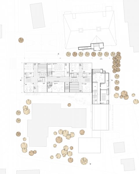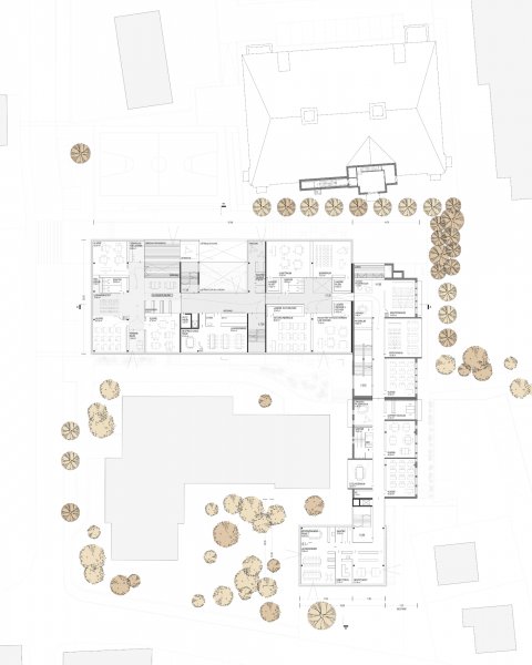-The structuring and setting of the open space is achieved by positioning the new building of the secondary school and creating a new forecourt situation with ideally usable open space directly assigned to the pupils as well as educational spaces.