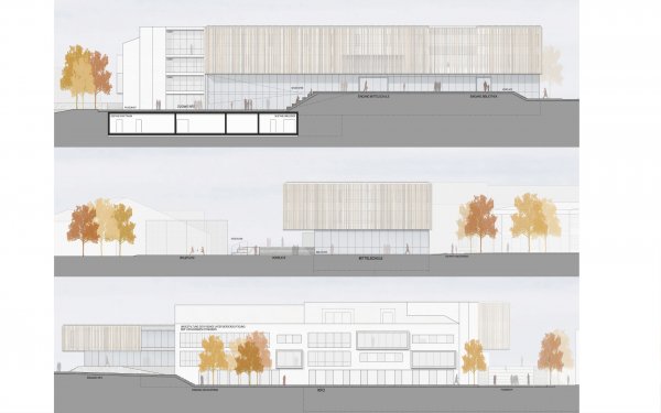 The orientation of the property as well as the existing situation in relation to the specifications for the San Candido school zone result in the positioning and arrangement of the building masses on the building site. The rethinking of the design of the area with regard to its entirety, the formulation of the access and the use of the open space, taking into account an optimal and economical implementation, form the starting point of the conceptual approach. The surrounding area is given an identity-creating urbanistic sign.