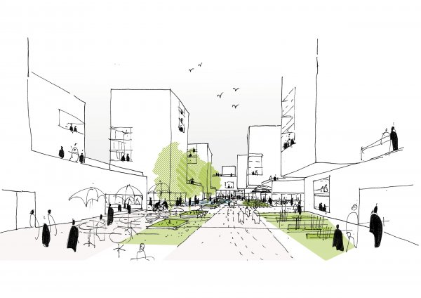 An open landscape that offers the whole neighbourhood a journey through different atmospheres, added value of community life, and zone of union.