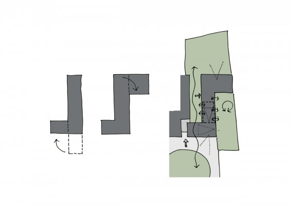 Regarding to this typological elements,- the characteristic L-shaped buildings with stretched plots, the project develops a kind of “accentuated typology” that comes into dialogue with the surrounding. This environment gets an incisive urbanistic sign.