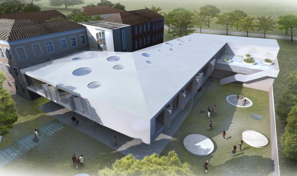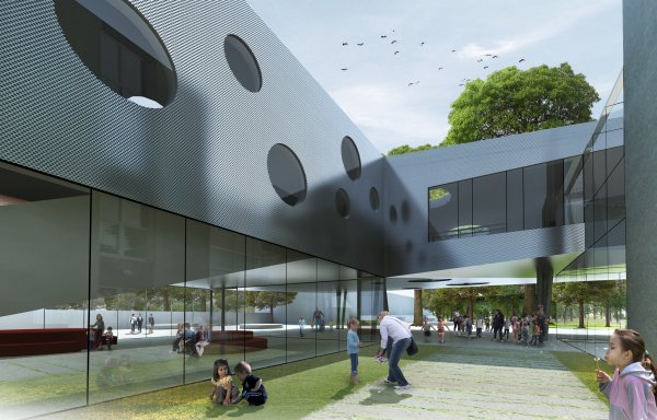 The two storey high, compact and angular building fits in the existing plot of the primary school, forming a new space sequence and developing new qualities for the site.