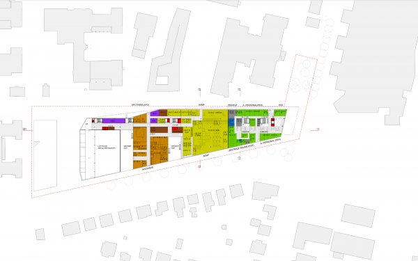 The building structure receives a differentiated structuring of the envelope. Through the structuring and setting as well as the design of the street front, the volume is architecturally embedded in the surroundings.