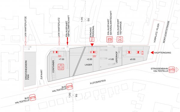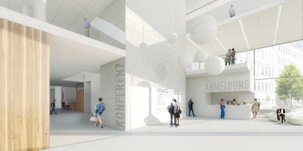 The rethinking of the design of the existing area, in particular the residential development south of Flötzersteig, with regard to its entirety, the formulation of the upstream open space with an event and conference centre, as well as the creation of an unmistakable design of the building structure, taking into account an optimal and economic implementation, form the starting point of the conceptual approach.