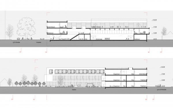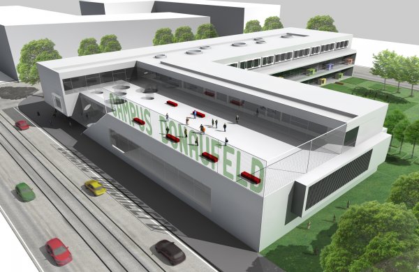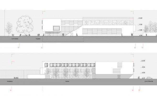 Eine charakteristische Bebauung der städtebaulichen Entwicklungszonen mit höheren Gebäuden bildet den urbanen Rahmen für das neue Campusgebäude. Unterschiedliche Funktionen (KIGA, Volksschule, Ganztagsbetreuung und Sport bzw. Bewegungsbereich) sind in einer Gebäudeform zusammengefasst. In dieser Art organisiert, ermöglichen sie logische, funktionelle Raumabschlüsse mit den kürzesten Wegen.