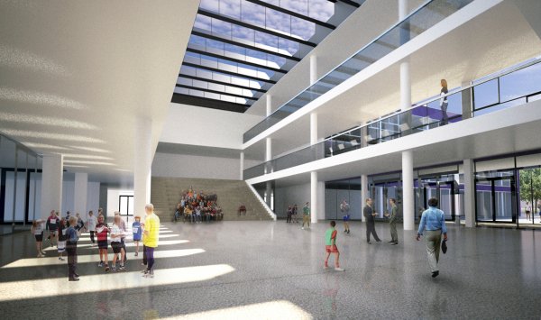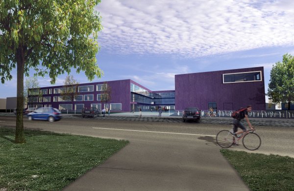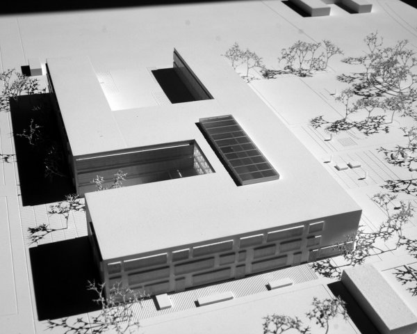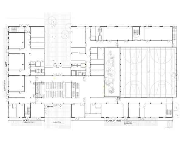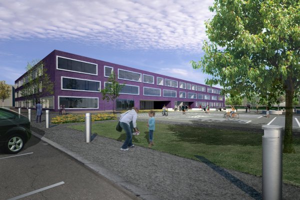 Das Grundstück des Projekts befindet sich in einem Siedlungsgebiet am Stadtrand Nürnbergs, welches geprägt ist von Reihenhausbebauung der 60er und 70er Jahre und einem hohen Grünanteil. Der kompakte Baukörper, der an der südwestlichen Grundstücksgrenze stituiert ist, ermöglicht eine Freihaltung des restlichen Grundstücks und bietet so eine großzügige unbebaute Fläche, welche den unterschiedlichen Nutzern auf individuelle Art und Weise zu Verfügung steht. Durch Einschnitte in das Volumen des Baukörpers und dadurch entstehende Höfe, Patio und Aula werden Zugänge, Nutzungsbereiche und Blickbeziehungen definiert. Durch die im Bericht der Bestandsanalyse nachgewiesenen (Altlasten) sowie Analyse der Tragfähigkeit und Brandschutz Eigenschaften der bestehenden Konstruktion, wurde der Neubau des Schulgebäudes als wirtschaftliche und bautechnisch richtige Variante gewählt. Der Bauablauf ist in Phasen gem. dem Bauphasenplan vorgesehen.