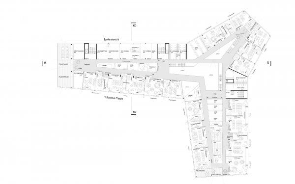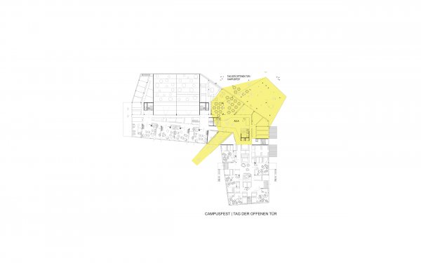 Das Überdenken der Gestaltung des bestehenden Schulareals im Hinblick auf seiner Gesamtheit, die Formulierung des Zugangs, sowie die Schaffung einer unverwechselbaren Ausgestaltung des Baukörpers, unter Berücksichtigung einer optimalen und wirtschaftlichen Umsetzung, bilden den Ausgangspunkt des konzeptuellen Ansatzes.