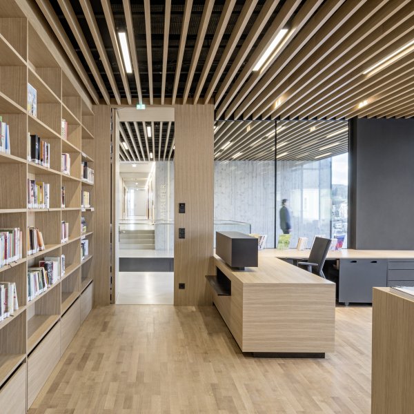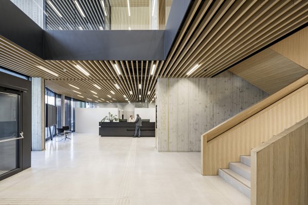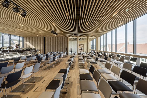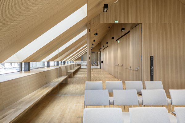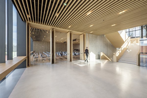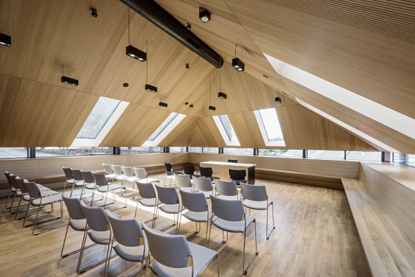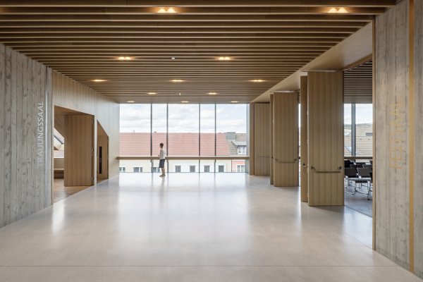Die innere Organisation der einzelnen Bereiche ist übersichtlich organisiert und über kurze Wege miteinander verbunden. Ein fließender Übergang zwischen den Funktionsbereichen sowie deren Zwischenräume, ermöglicht die im Betrieb notwendige Qualität der Nutzung. Aufenthaltsbereiche für die Veranstaltungen und Pausen sind den Räumen direkt zugeordnet und können nach Bedarf auch in ihrer Gesamtheit genutzt werden.