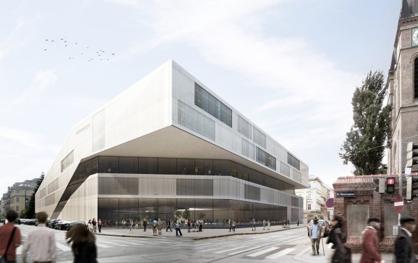 Die zweigeschossig aufgeständerte Vorplatzzone definiert den Hauptzugang von der Kreuzgasse für die die mittlere und höhere Schule für Sozialbetreuungsberufe (Caritas). Der Zugang für Kindergarten, Volks- und Kooperative Mittelschule (Schulstiftung der ED Wien) erfolgt von der Antonigasse. Diese beiden Eingangszonen sind transparent gestaltet und ermöglichen somit den Durchblick über den Hof zur anderen Straßenseite.