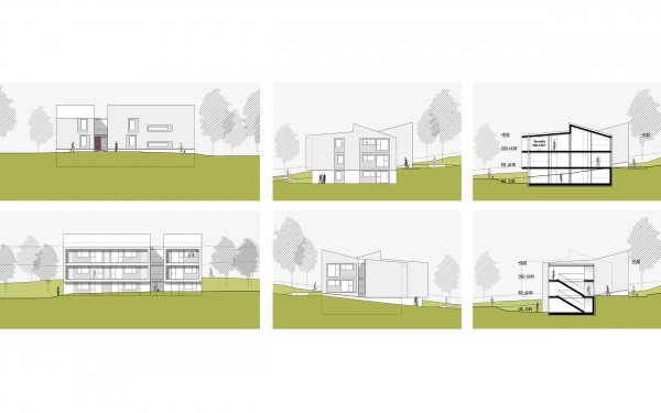 Die Schaffung einer Wohnungsanlage mit einer unverwechselbaren Ausgestaltung, unter Berücksichtigung der Höhenentwicklung des Grundstückes und der Bedürfnisse der künftigen Bewohner, ist der Ausgangspunkt der konzeptuellen Idee.