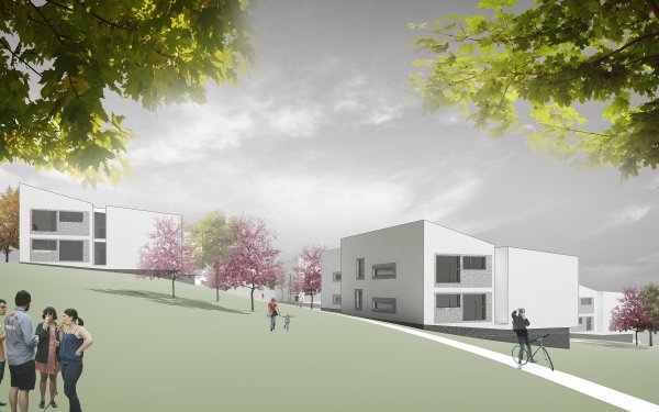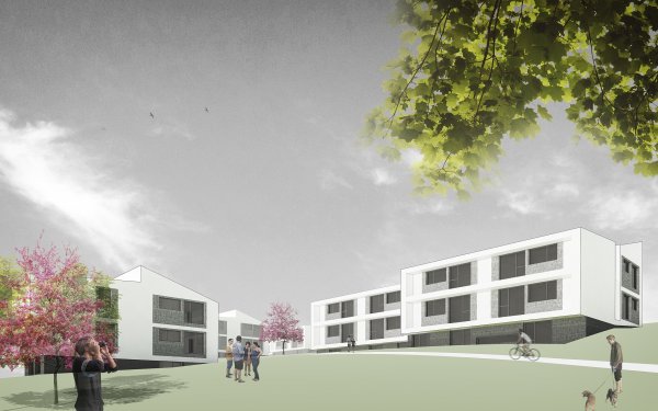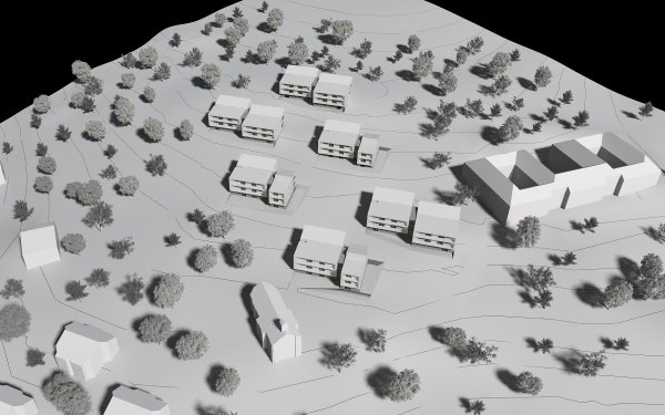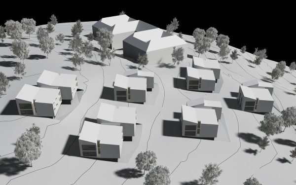 Das Konzept des Geländes für die Dienstwohnungen basiert auf dem Masterplan des neuen Campusgebietes, auf der bestehenden Bebauung des IST Austria Ensembles und der topographisch besonderen Landschaft.
