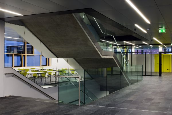 In den drei Obergeschossen sind 30 Seminarräume, 6 EDV Säle und 20 Labors sowie Aufenthaltsräume für Studenten und Verwaltungsflächen mit ca. 2.000m situiert.