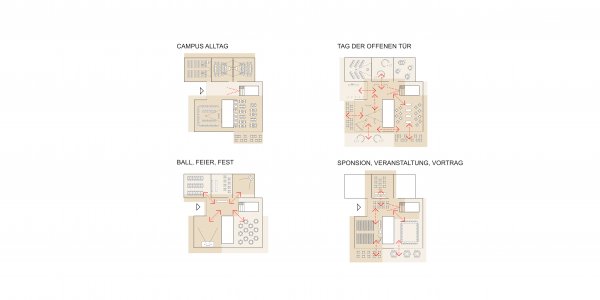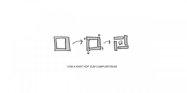 Die Überlagerungen aus Erschließung, Grünraum und zugeordneten Freibereichen um die Gebäudestrukturen erzeugen ein komplexes urbanes identitätsstiftendes Gebilde. Der Freiraum bietet mit den Übergängen und Nutzungen inmitten der Campusgebäude differenzierte öffentliche und halböffentliche Bereiche an.