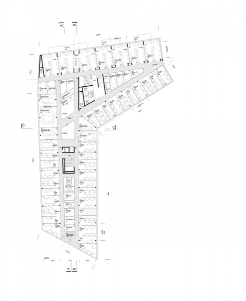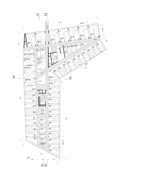 Die Halle, die sich über vier Geschosse erstreckt, ist gleichzeitig Drehscheibe und Verteiler für die verschiedenen Nutzungseinheiten, dient als Treffpunkt, und erweiterte Aufenthalt- sowie Pufferzone der Seminarräume.