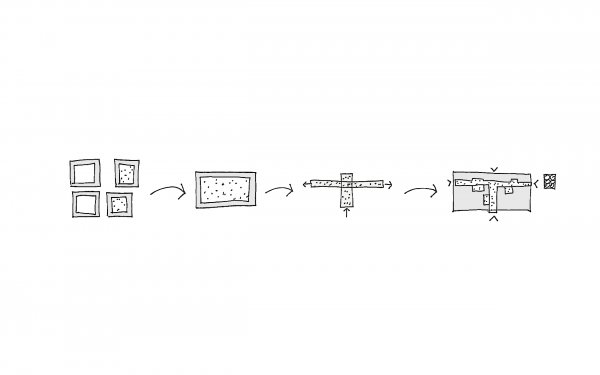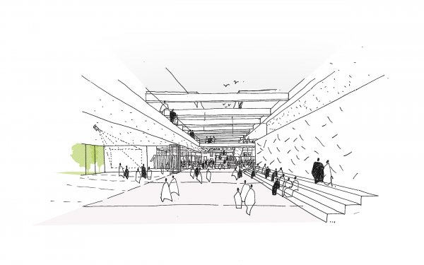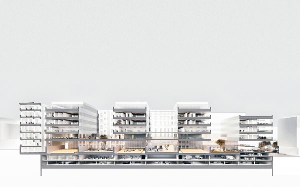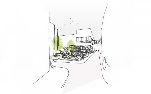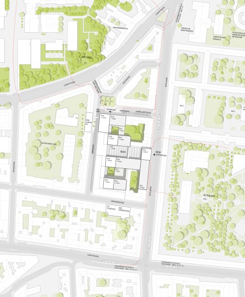 In der Stadt entsteht ein Gebäude das durch strukturierte Vernetzung aller Funktionen selbst wie eine studentische „Stadt“ funktioniert mit allen Innen- und Außenraum Qualitäten die ein lebendiges Zentrum ausmachen.