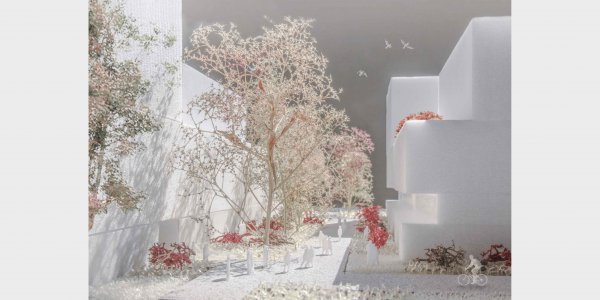 Ein weiteres, zentrales Entwurfsthema ist die Einfügung und Einbindung in die gebaute Nachbarschaft, was mit einer kleinteiligen Gliederung und Höhenstaffelung gelingt. Die Höhenstaffelung mit Sockel und Add-On´s wird als Entwurfsprinzip weitergeführt.