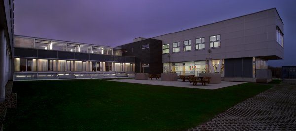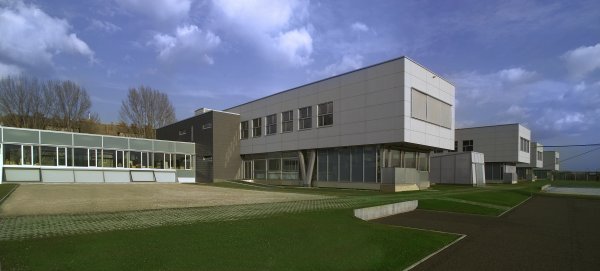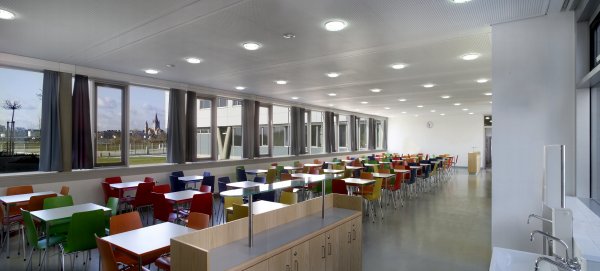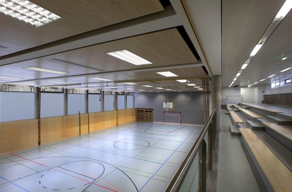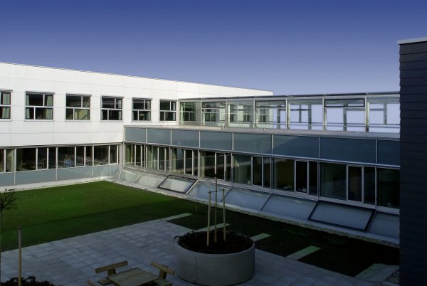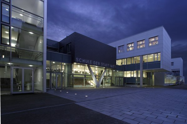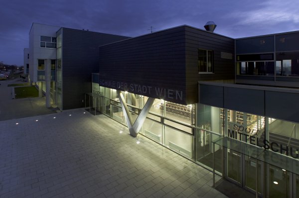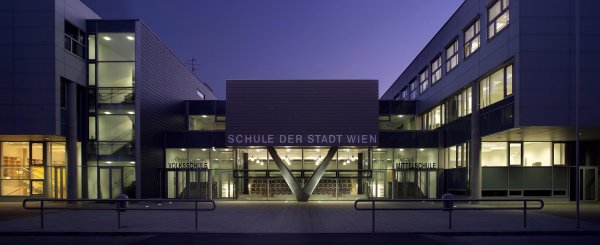 Die Schule liegt unweit der Reichsbrücke am Kaisermühlendamm, zwischen Jungmaisstraße und Bellegardegasse. Von der Ecke Jungmaisstraße Am Kaisermühlendamm lässt sich der grundsätzlich einfache tektonische Aufbau der Gesamtanlage in Form einer kammartigen Anordnung der Bauteile gut ablesen. Südöstlich an den Wohnpark Neue Donau anschliessend, bildet ein von der Straße deutlich abgerückter, längsgestreckter Baukörper ein zweigeschossiges Rückrat.