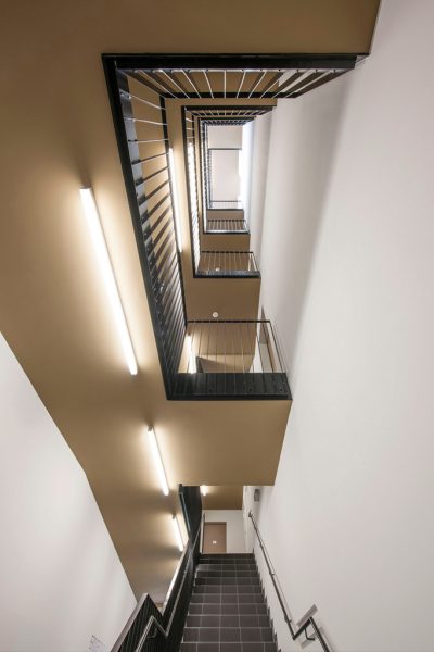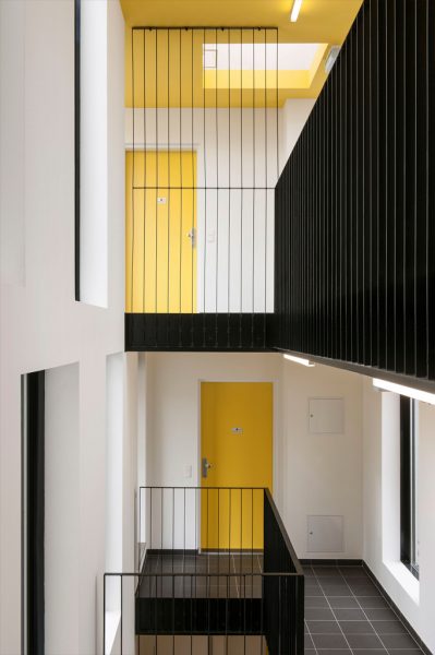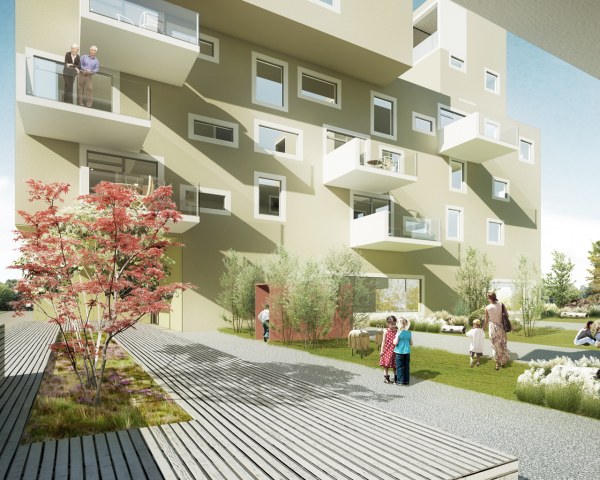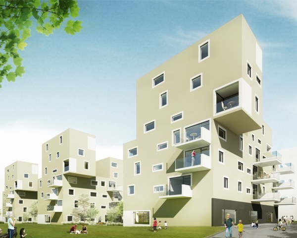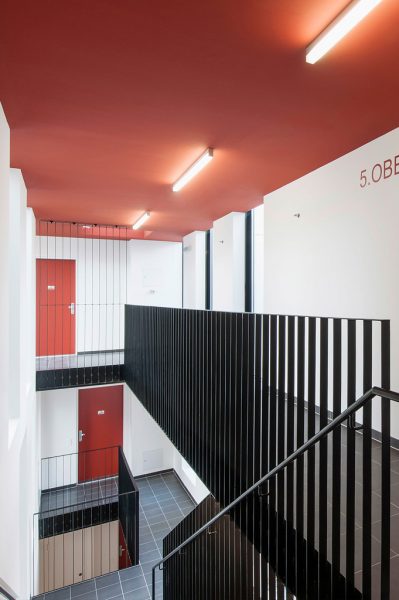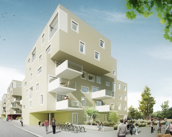 Die Wohnungsanzahl von 21 – 23 Wohneinheiten pro Gebäude soll die Überschaubarkeit und Identifikation mit dem Wohnort fördern.