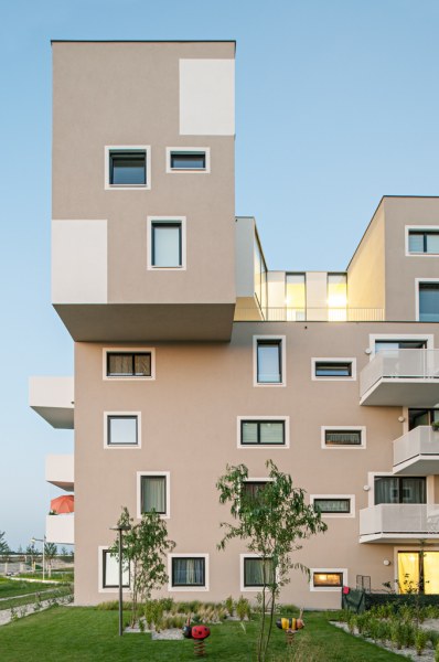 Die einzelnen Wohnungstypen sind durch ihre Orientierung und räumlichen Abschlüsse (Loggien) vor gegenseitigen Einblicken geschützt.